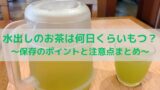 カフェインは利用作用があるので避け、水やカフェインレスのお茶などで水分をとるようにしましょう。